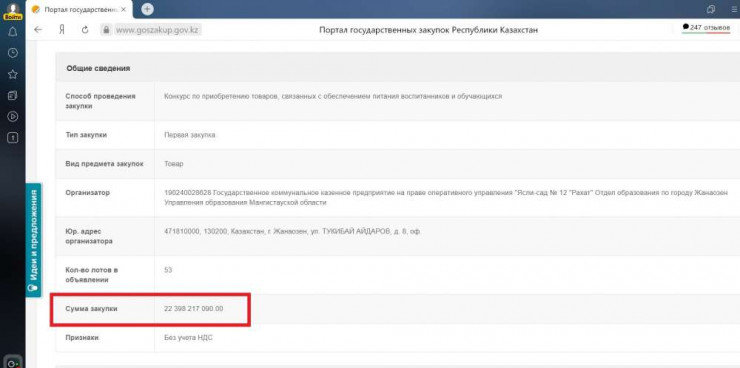 "Ничего особенного, просто детский садик в Мангистауской области закупает продукты на год. На 22 миллиарда тенге. Как же быстро растут чужие дети", - написал автор публикации.