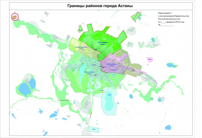 Северные границы района совпадают с существующей границей города Астаны;