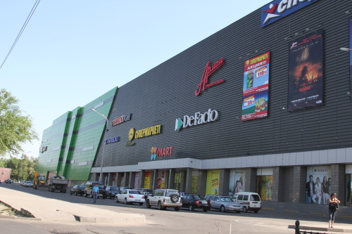 На этом же перекрестке расположен большой торговый центр MART. Напротив него - здание Турксибского районного акимата.
