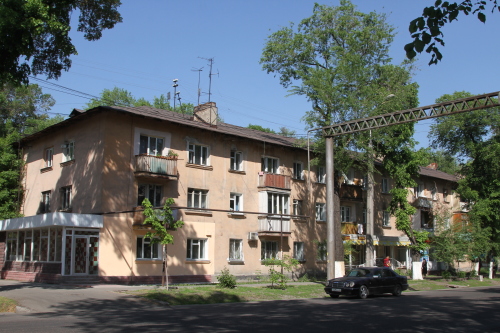 Есть небольшое здание филиала партии "Нур Отан". А рядом с ним "Казахтелеком" и Турксибский районный ЦОН.