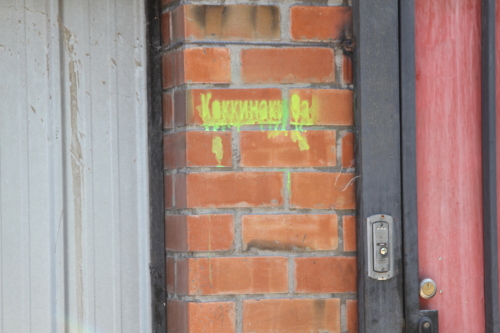 Напротив нее - дома "хрущевской" постройки - двухэтажные, кирпичные, с обшарпанными стенами желтоватого цвета.