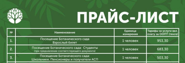 По акту прокурорского надзора тариф на посещения гражданами Ботанического сада снижен на 103 тенге. Ранее входной билет для взрослого человека стоил 953 тенге.