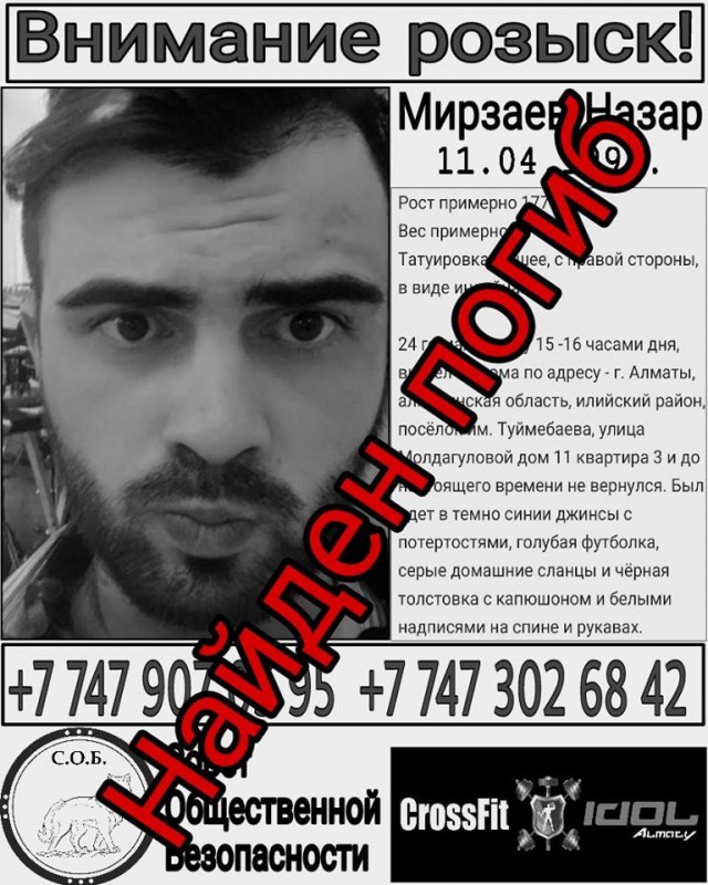 Ранее в социальных сетях распространялась информация о пропаже 30-летнего звукорежиссера музыкальной группы Black & White. Сообщалось, что он вышел из дома 24 мая к брату в поселок имени Мухамеджана Туембаева и с того момента его никто не видел.