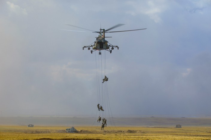За практическими действиями войск наблюдали президенты России и Кыргызстана, а также главы оборонных ведомств Казахстана, Китая, Кыргызстана, России, Таджикистана и Узбекистана.
