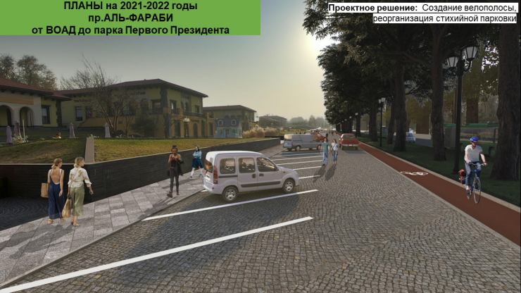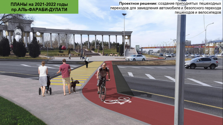 По самому проспекту Аль-Фараби от ВОАД до парка Первого Президента построят тротуары, велодорожки и автобусную полосу. Акимат планирует обновить также и весь путь до аэропорта. Подробнее читайте здесь.