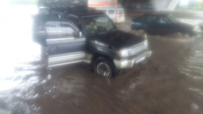 Отметим, обильные дожди будут продолжаться на протяжении всего дня. Синоптики сообщают также и о возможном граде. Из-за ливня на дорогах уровень воды достиг бордюров, что затруднило автолюбителям видимость.