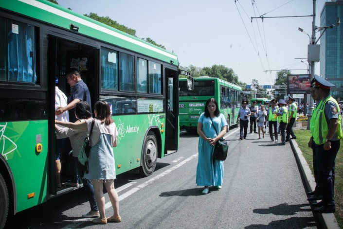 Похоронная процессия уезжает. Все желающие могут отправиться на кладбище в поселке Дружба на специальных автобусах. На 10-15 минут движение по Абая парализовано - реки народа растекаются во все стороны.