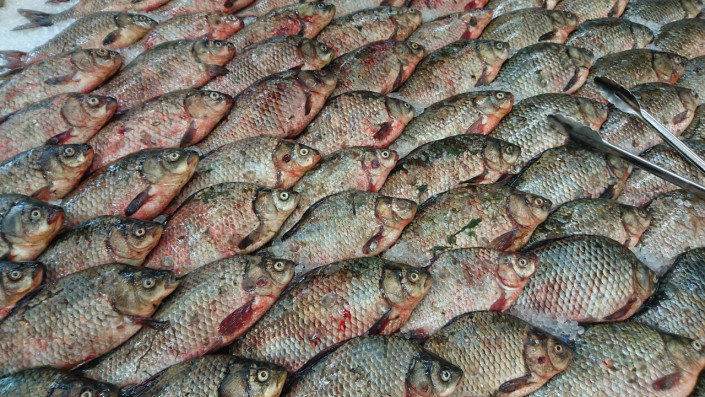 Мышечная ткань плотно связана с костями, эластичная, с трудом отделяется от кости. Вмятина, которая образуется от нажатия пальцев, быстро выравнивается. Также можно определить свежесть купленной продукции, опустив ее в таз, наполненный водой, свежая рыба должна утонуть.