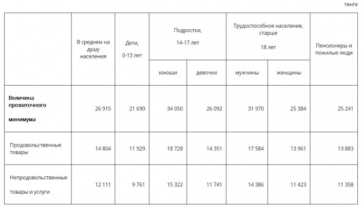 Прожиточный минимум в Казахстане составил 26 915 тенге