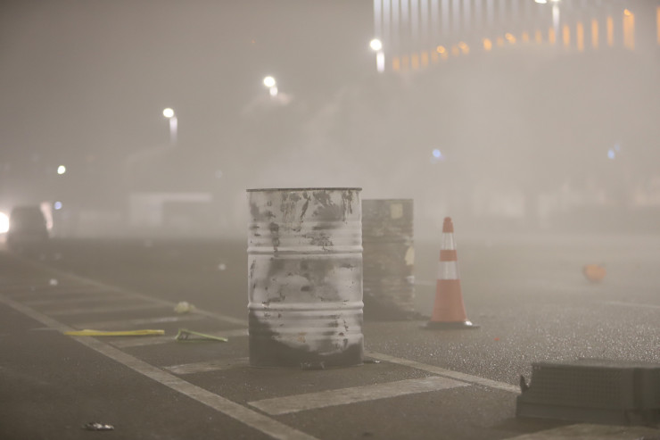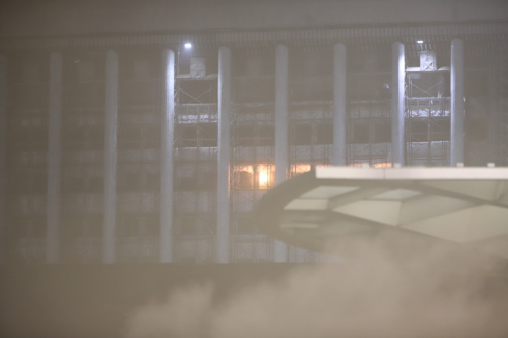 "Наша задача заключалась в создании воздушной перспективы. Это дым, который нависает в воздухе, свет, который проходит через него, отблески огня. Нужно учитывать много факторов, включая плотность этого дыма. На съемках мы используем как естественный дым, так и особый глицериновый дым, которым как раз и заволокло площадь. Он образуется в результате испарения медицинского глицерина и абсолютно безопасен для актеров и всей группы. В некоторых случаях, когда необходимо показать в кадре горящую машину, делаем естественный дым, размещая в ней специальную горелку", - рассказал журналистам специалист по пиротехнике.