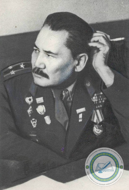 Кеңес Одағының батыры, гвардия полковнигі, жазушы Бауыржан Момышұлы. Қазақстан Республикасы Мәдениет және спорт министрлігі Орталық мемлекеттік архиві қорларынан