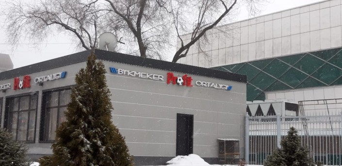 Букмекерский центр по улице Байтурсынова выше проспекта Абая.