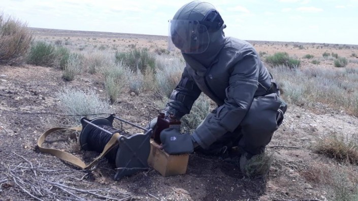 "Близость к полигону Эмба, который в советское время использовался для исследовательских работ и испытаний новейших образцов военной техники и вооружения, проведения боевых стрельб, до сих пор преподносит сюрпризы. По состоянию найденного снаряда могу предположить, что он относится к советскому периоду", - отметил командир группы разминирования войсковой части № 30238 майор Аслан Баймагамбетов.