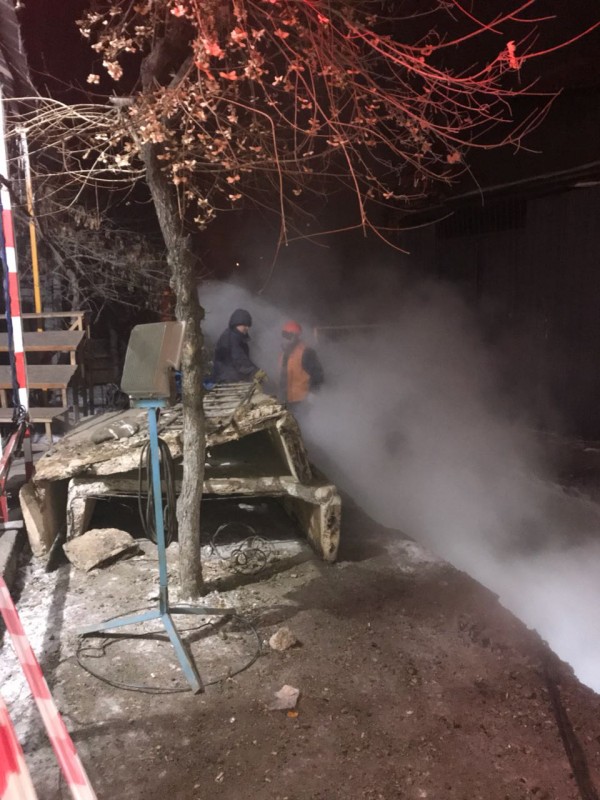 Работы по ликвидации аварии на теплосетях в "Таугуле" продолжались до утра Фото предоставила пресс-служба акимата Алматы