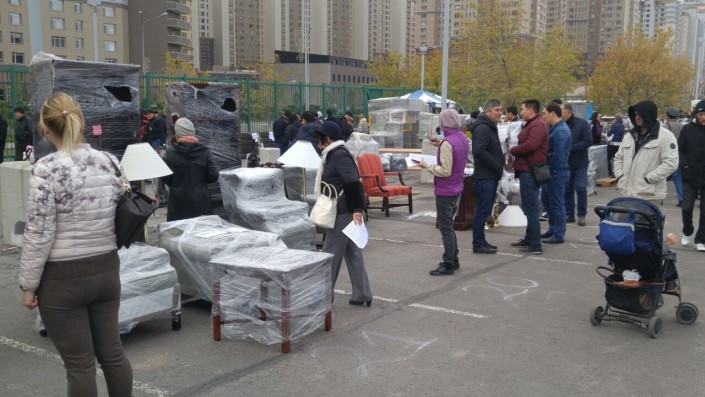 Субботнее утро, 10 часов. У парковки посольства США в Астане выстроилась огромная очередь желающих поучаствовать в распродаже вещей американского посольства.