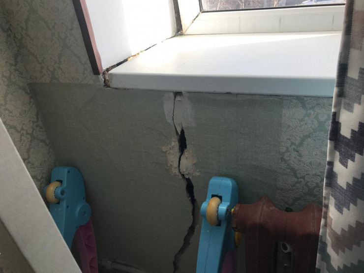 "Нам некуда идти, и мы пока живем в одной комнате. Те, где большие трещины, я закрыла, чтобы туда не ходили дети. Нам очень страшно, я боюсь за наши жизни. Из соседей у нас только пожилые бабушки. Одной вроде 70, а второй 90 лет. Они почти не выходят из дома", - делится женщина.