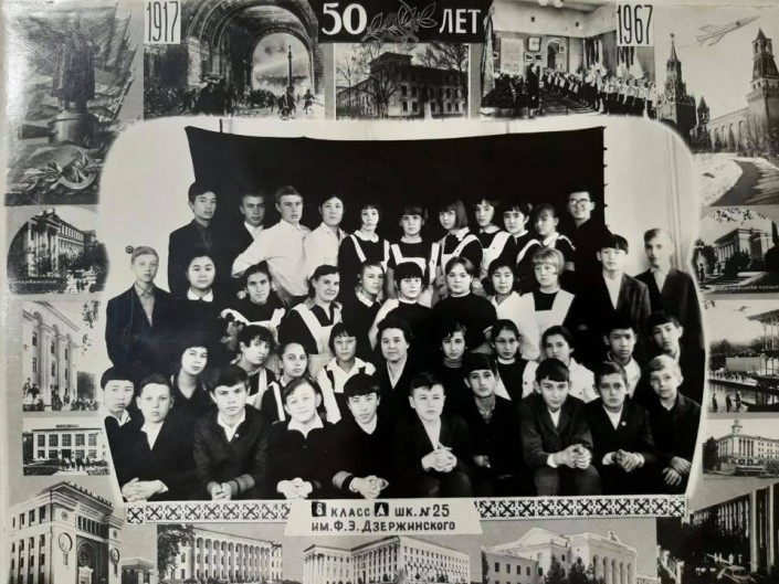 На общем фото запечатлены ученики восьмого "А" класса школы № 25 имени Дзержинского, расположенной в Алматы.