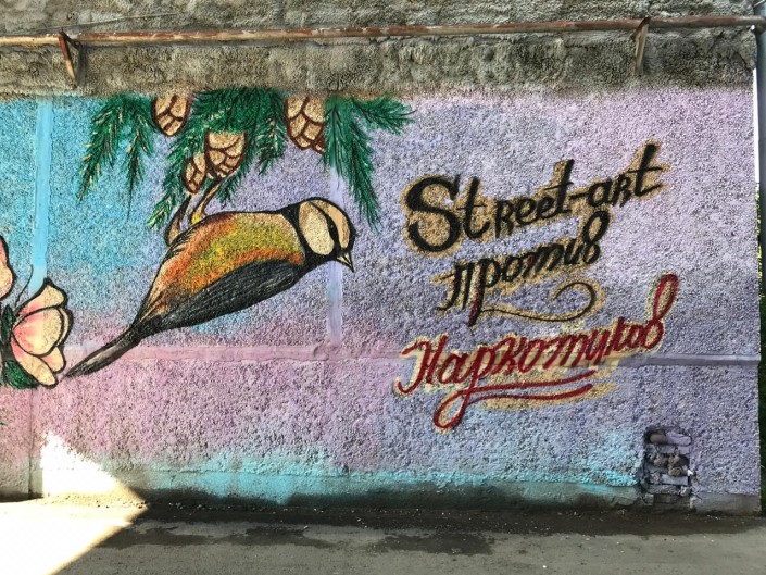 В МВД отметили, что все больше граждан высказывают желание участвовать в акции по уничтожению надписей с информацией о способах получения наркотических средств. Художники рисуют на стенах изображения птиц.