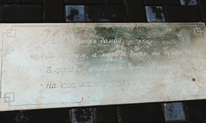 Примечательно, что на тротуаре по Тулебаева вмонтирована табличка с цитатами из песен Виктора Цоя. Как известно, именно здесь в 1988 году снимали знаменитую сцену фильма "Игла".