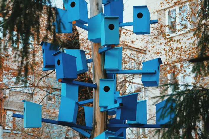 Необычные скворечники яркого цвета украсили обновленную улицу.