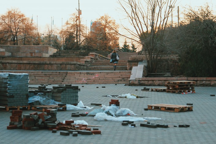 По улице Байсеитовой все еще проводятся работы по укладке гранитной брусчатки. Здесь будет выложена плитка красного и серого цветов.