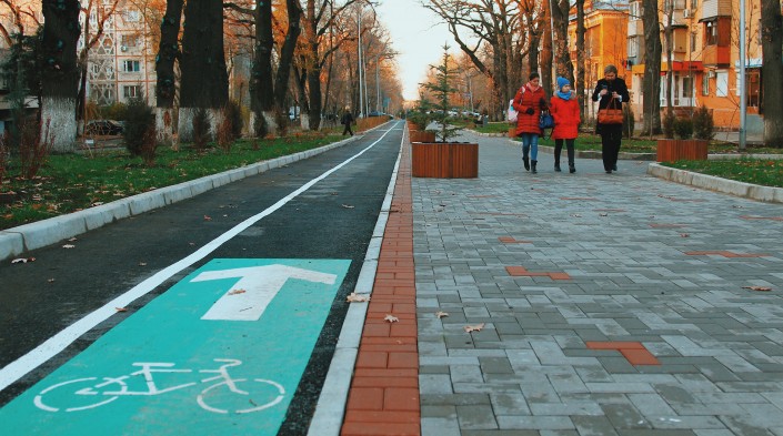 Также здесь есть велосипедная дорожка.