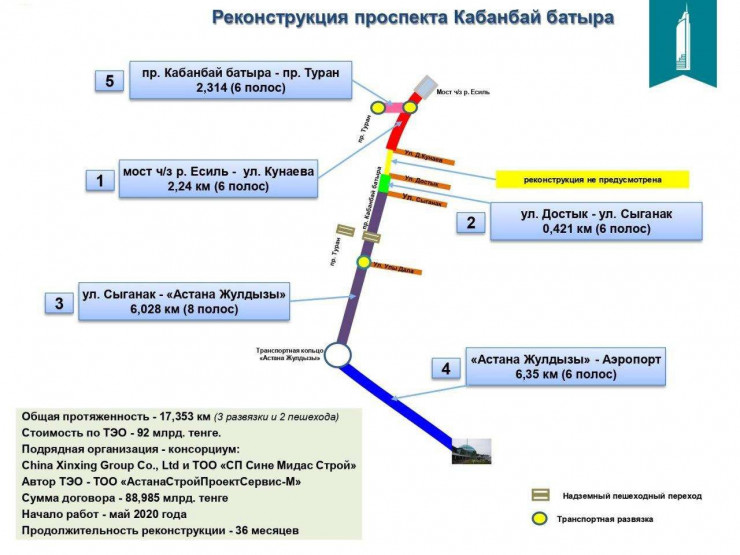 До проспекта Сыганак вдоль Кабанбай батыра проходит линия легкорельсового транспорта (ЛРТ). Редакция Tengrinews.kz уточнила, не будет ли задействовано пространство под ЛРТ в реконструкции проспекта.