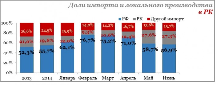 По данным экспертов ассоциации, в июне, по сравнению с маем 2015 года, доля автомобилей российского производства на казахстанском рынке снизилась практически на два процента и составила 56,9. В сравнении с февралем 2015 года доля рынка продаж российских автомобилей снизилась на 20 процентов - 5060 единиц. Потеряли свои позиции модели Lada, Hyundai, Kia и Uaz, произведенные в РФ.
