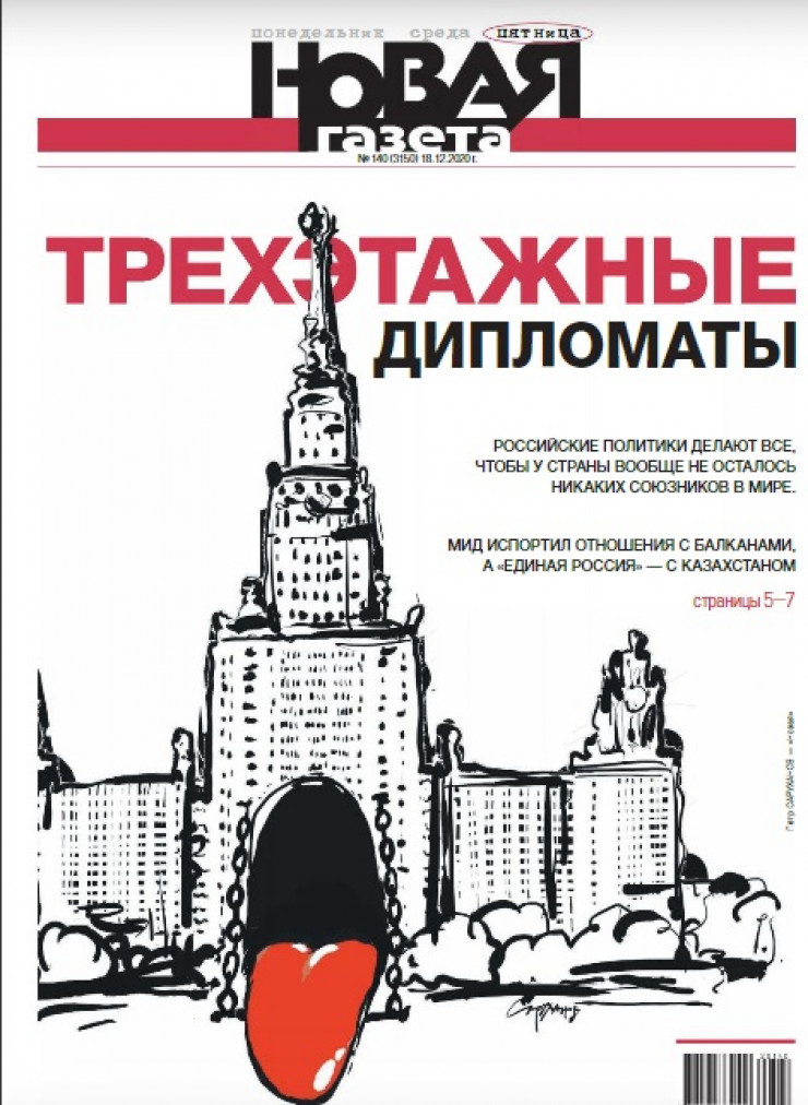 Обложка российской газеты в выпуске № 140 названа "Трехэтажные дипломаты". На ней издание написало, что "МИД испортил отношение с балканами, а "Единая Россия" - с Казахстаном".
