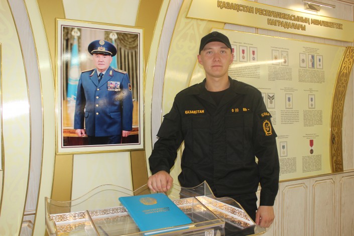 Как рассказали в областном ДВД, молодой парень является спортсменом и скоро пополнит ряды специального отряда быстрого реагирования. Максат родился в 1995 году в поселке Аулиеколь Костанайской области. С детства мечтал о службе в полиции. После школы поступил в Костанайский индустриальный колледж, а после окончания его призвали в армию. Парень, благодаря высокому росту и спортивной подготовке, по распределению попал в Службу государственной охраны.
