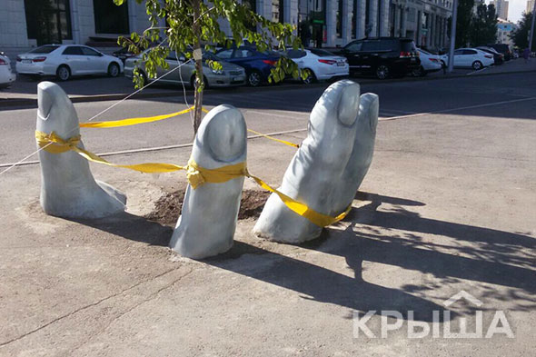 Как сообщается, необычная композиция появилась в районе пересечения проспектов Сарыарка и Абая.