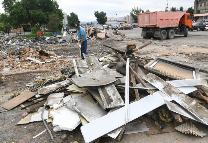 Сообщается, что сейчас на автовокзале "Сайран" ведутся обновление фасада и демонтаж всех незаконных построек.