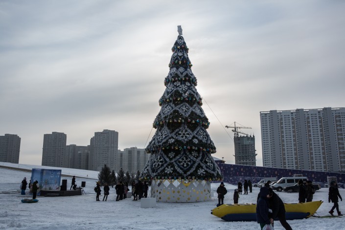 В центре ледового катка установлена новогодняя елка, оборудована сцена для проведения развлекательных мероприятий для жителей и гостей столицы с большим светодиодным экраном, который выводит информацию на экран и транслирует предновогодние ТВ-шоу. Здесь в новогоднюю ночь будут транслировать и поздравление Президента страны Нурсултана Назарбаева.