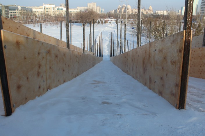 По словам руководителя проекта Ербола Сабитова, горка построена на этой территории временно. "Это временная конструкция. Мы с наступлением весны ее уберем. Она уже закончена, осталось только освещение установить. Завтра-послезавтра уже выйдем в рабочий режим, со следующей недели откроем", - рассказал Сабитов.
