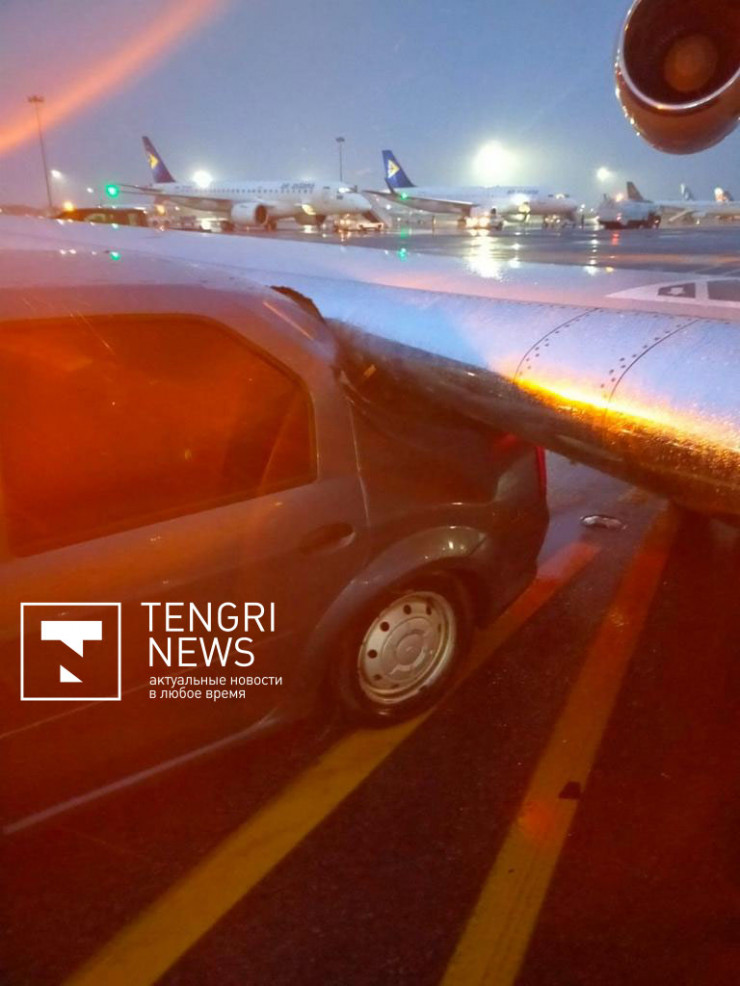 В социальных сетях появилось видео происшествия на взлетно-посадочной полосе международного аэропорта Алматы. На кадрах видно, что автомобиль попал под крыло самолета.
