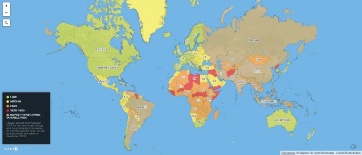 Аналитики компаний International SOS и Control Risks, которые занимаются оценкой глобальных рисков для здоровья и безопасности людей во время путешествий, составили карту мира, иллюстрирующую уровень опасности при посещении различных государств.