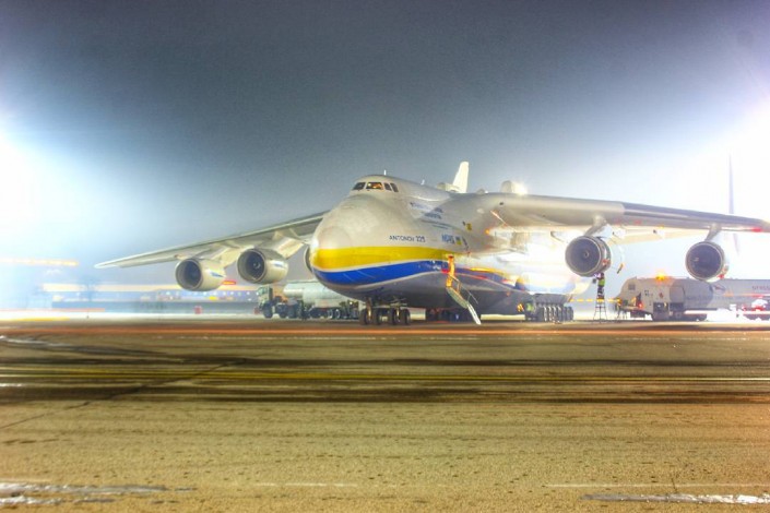 Это вторая посадка уникального самолета в аэропорту Алматы. 13 декабря "Мрия" приземлилась на дозаправку по пути из Германии в Китай.