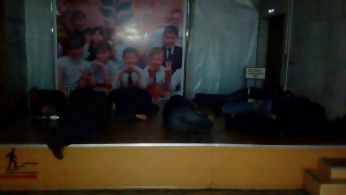 Некоторые из собравшихся привели с собой маленьких детей и школьников и, несмотря на мороз, отказывались войти в ДК Шахтинска. Жены и члены семей горняков говорили, что таким образом они проявляют солидарность с бастующими под землей братьями-шахтерами. Спустя некоторое время жители все же прошли в зал ДК.