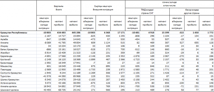 В СНГ больше всего уехало жителей Восточно-Казахстанской области - 2 402 человека, Костаная - 2 157 человек, Караганды - 2 067 человек, Павлодарской области - 1 771 человек, Северо-Казахстанской области - 1 426 человек.