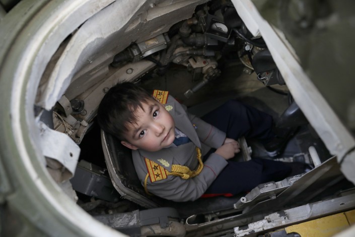 В Национальном военно-патриотическом центре Алидар встретился с воспитанниками республиканского военно-патриотического движения "Жас сарбаз" и ознакомился с экспонатами Военно-исторического музея. Также мальчик посетил элитную войсковую часть Десантно-штурмовых войск.
