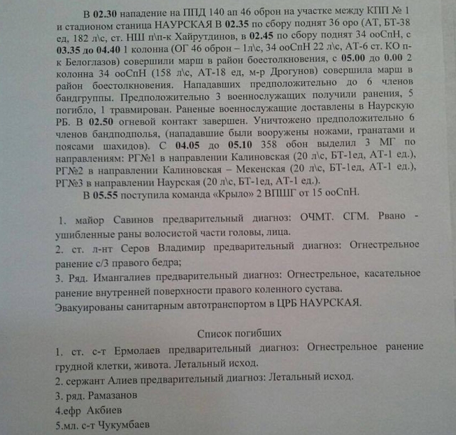 В ночь с 23 на 24 марта группа вооруженных людей напала на часть Национальной гвардии России в Наурском районе Чечни. По официальной версии, в ходе перестрелки шестеро бандитов были ликвидированы. В результате атаки террористов погибли шесть военнослужащих Нацгвардии, трое получили ранения.