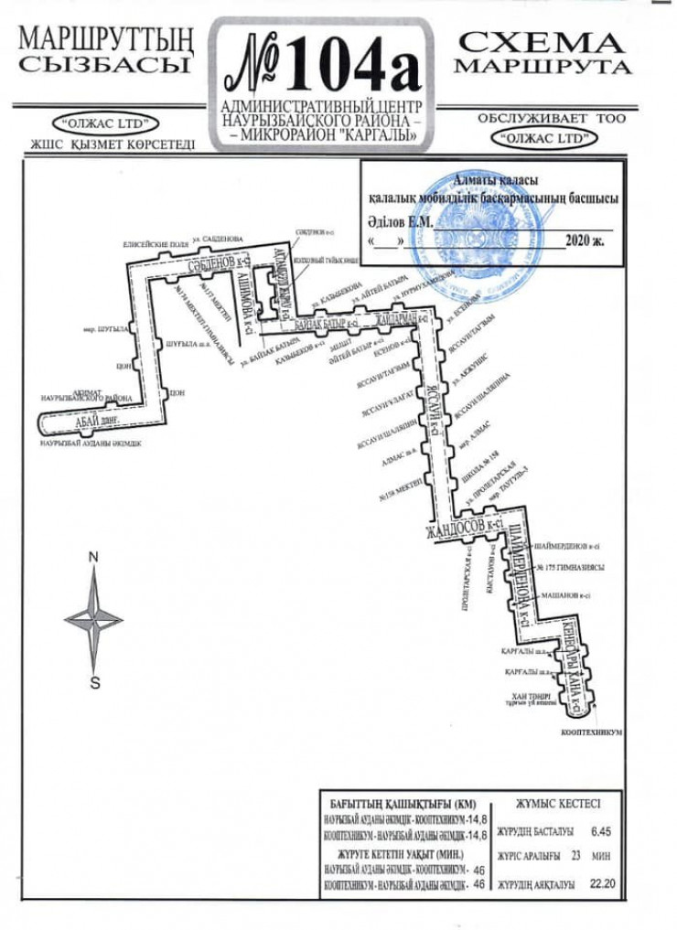 В акимате Наурызбайского района сообщили, что по просьбе жителей была изменена схема автобусного маршрута № 104А, который идет от акимата района до микрорайона Каргалы.