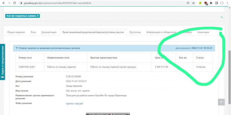 Информация о данном лоте попала в соцсети и вызвала резонанс. Пользователи сети обсуждали нерациональность таких трат и требовали провести по данному факту проверку. Их возмущения не остались незамеченными. Буквально спустя пару часов прокуратура района Казыбек би внесла свой протест на данное объявление, и закупка была отменена.