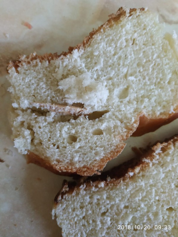 Вечером семья съела половину батона, все было хорошо. А утром стали делать бутерброды и обнаружили, нарезая на тонкие ломтики хлеб, щепку.