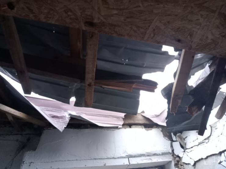 "Кровлю из профлиста сорвало на всей площади здания в 1440 квадратных метров. Здание 1980 года постройки, последний раз ремонтировалось в прошлом году", - сообщили в ведомстве.