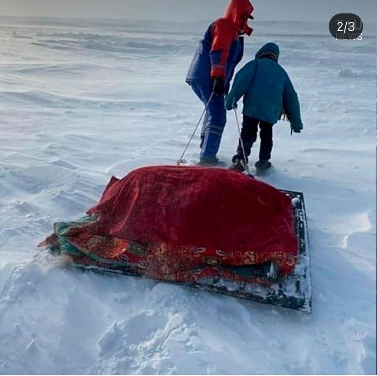Желіде тараған суретте фельдшер науқасты көлікке дейін қар үстінде сүйреп бара жатқаны көрсетілген. Фотода ешқандай жол жоқ екені, бәрін қар басып тастағаны анық көрінеді. Науқастың үстіне қалың көрпе жабылған. Фельдшермен бірге науқасты оның баласы да сүйреген.