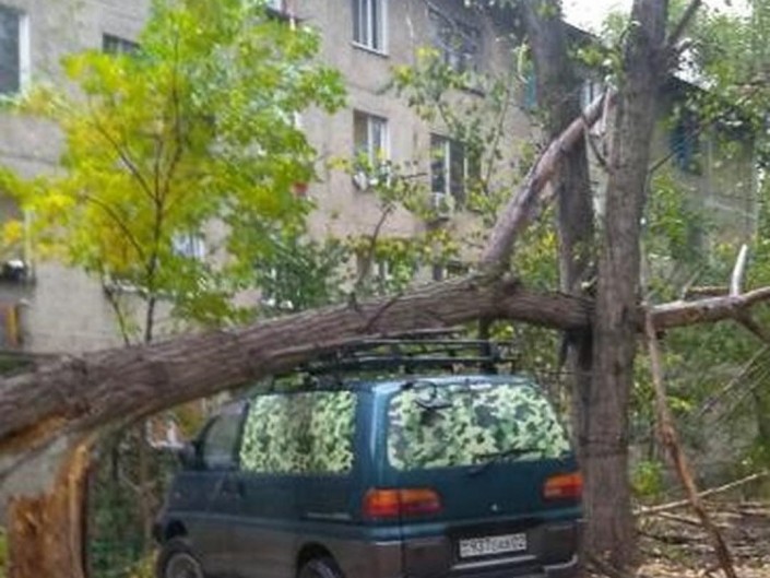 Как сообщают очевидцы, по улице Сейфуллина, не доезжая до улицы Жансугурова, от сильного ветра дерево упало на авто. В социальных сетях горожане пишут, что деревья рухнули на машины в разных частях города.
