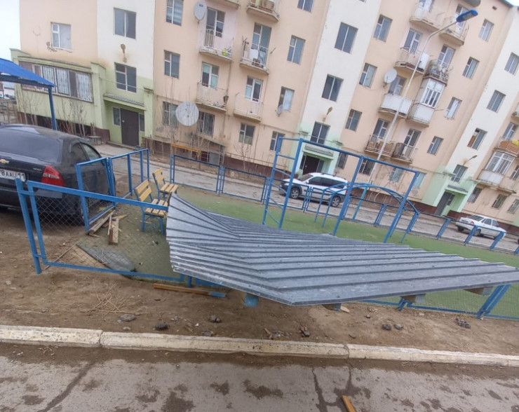 Сильный ветер снес кровлю балкона и повредил машину в Кызылорде