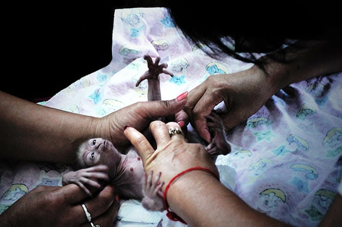 "Родители малыша - веселая пара гиббонов Ньюсик и Джулия, певцы и актеры нашего зоопарка. Мама Джулия - это наш приплод, родилась в зоопарке. Папа Ньюсик у нас хулиган. У Джулии была первая беременность. К сожалению, она не смогла выносить детеныша. Поэтому этот малыш, которого мы всем коллективом назвали Джимом, - ее первенец. Молодая мама еще не знает, что делать с ребенком. Детеныш на искусственном вскармливании, потому что у нее отсутствует молоко. Сейчас с ним дежурит специалист. Малыш бодрый и крупный", - сообщили в алматинском зоопарке.