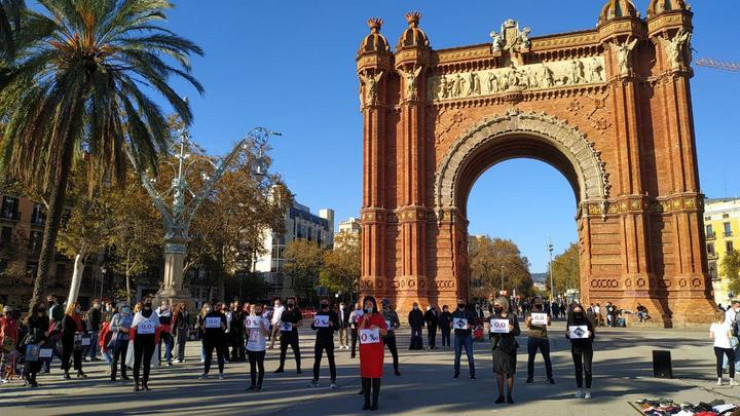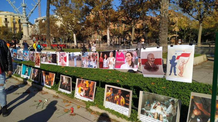 Даже в Барселоне, у Триумфальной арки, проходит акция белорусов Каталонии, посвященная протестам в Беларуси.